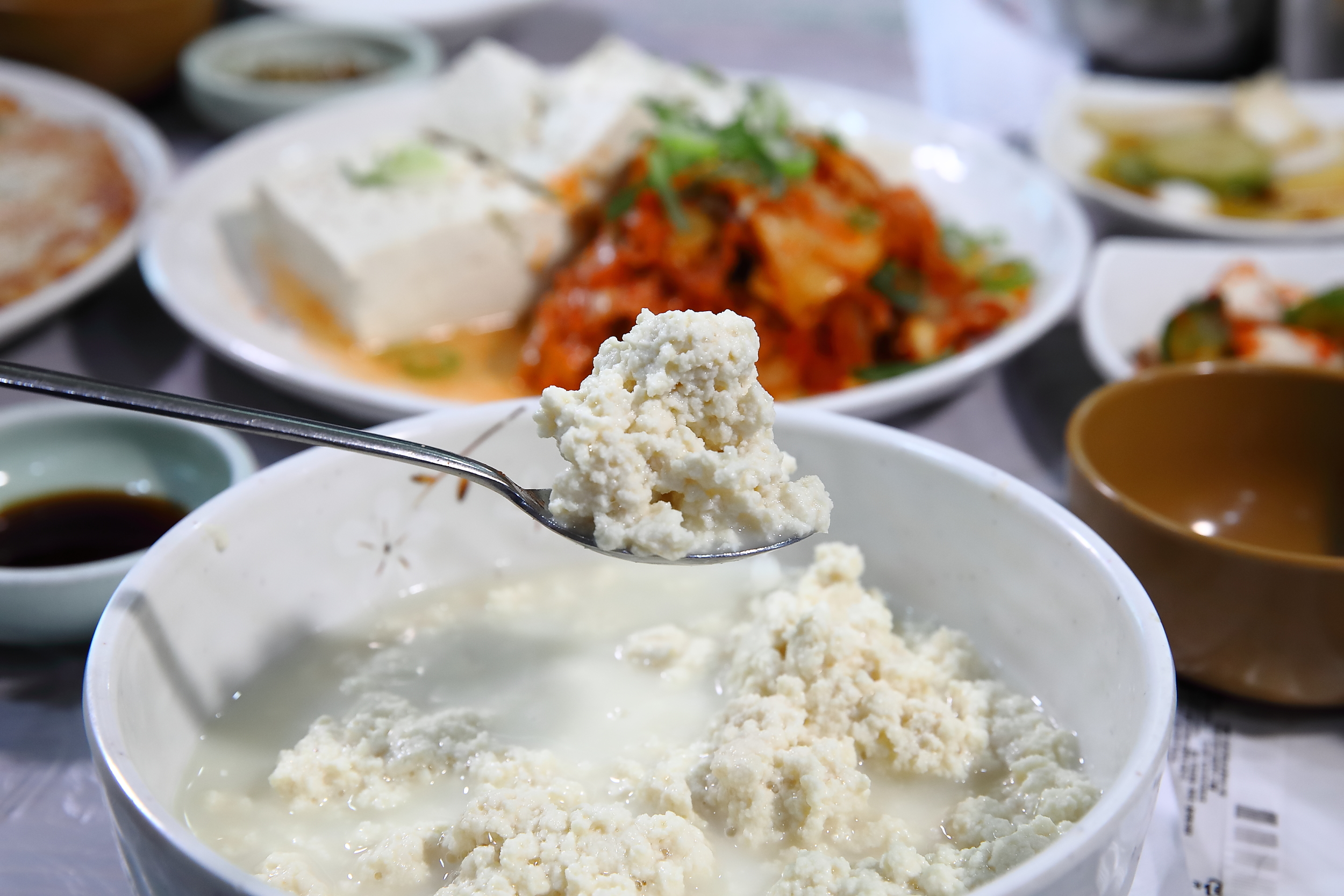 그리고 속초 순두부 맛집의 순두부는 간장에 찍어먹기전에 그대로 수저로 퍼서 한입 먹어봤는데요