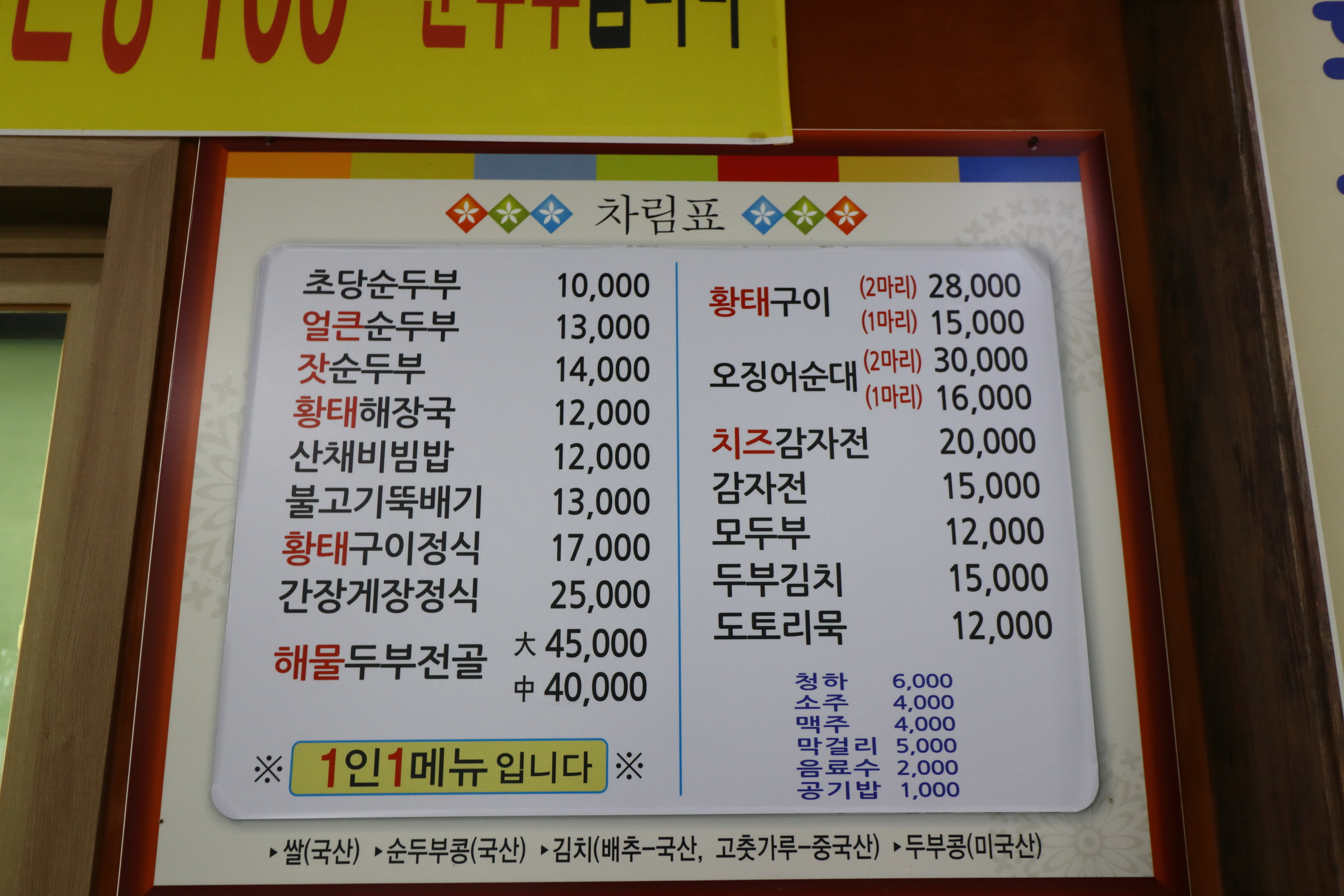 그리고 속초 순두부 맛집 메뉴먼저 보고 가실께요~