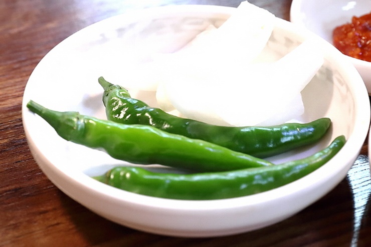 해장국에 양파랑 고추는 빠질 수 없죠.