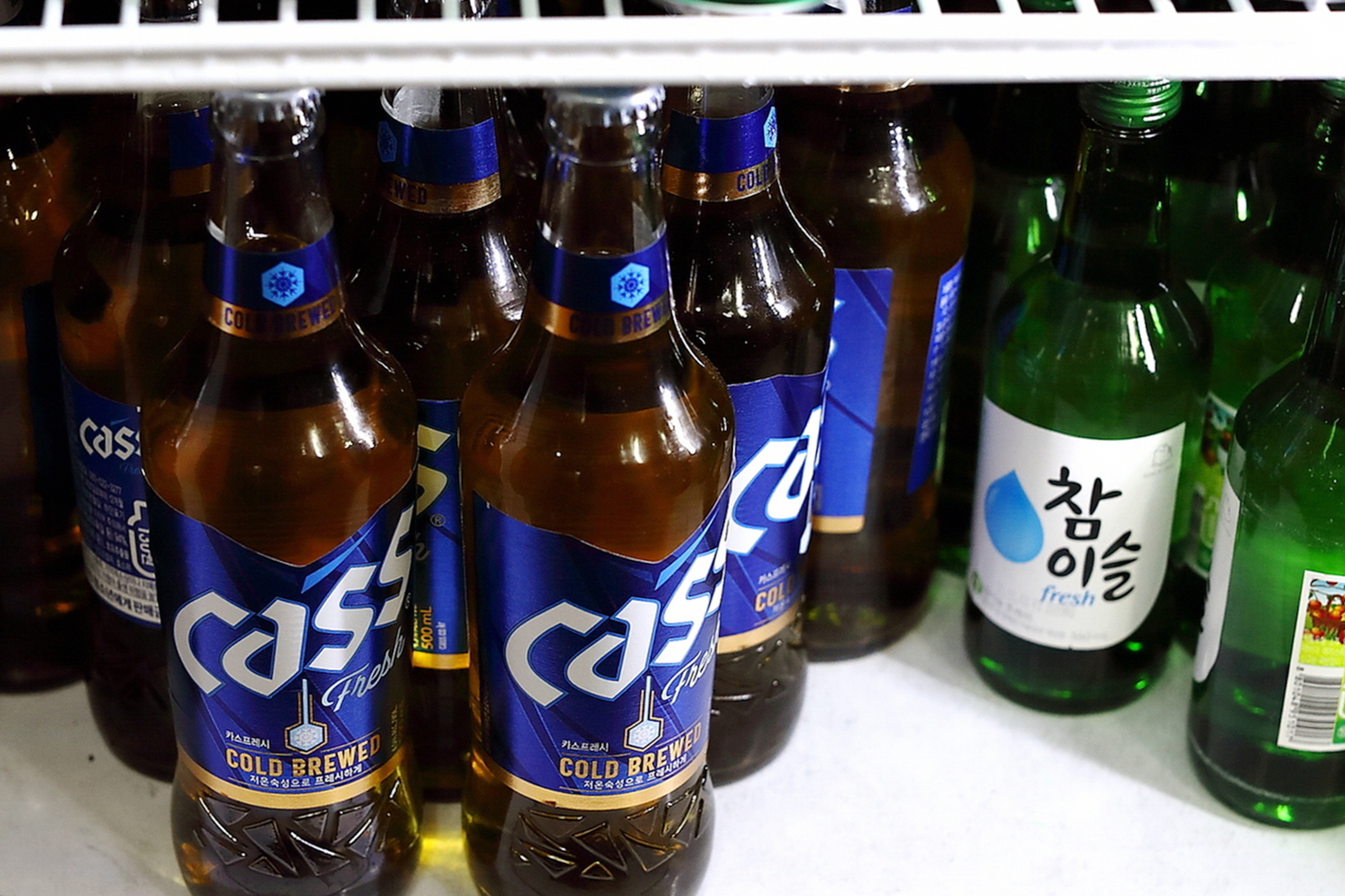 맥주와 소주가 가득 준비되어 있고요,